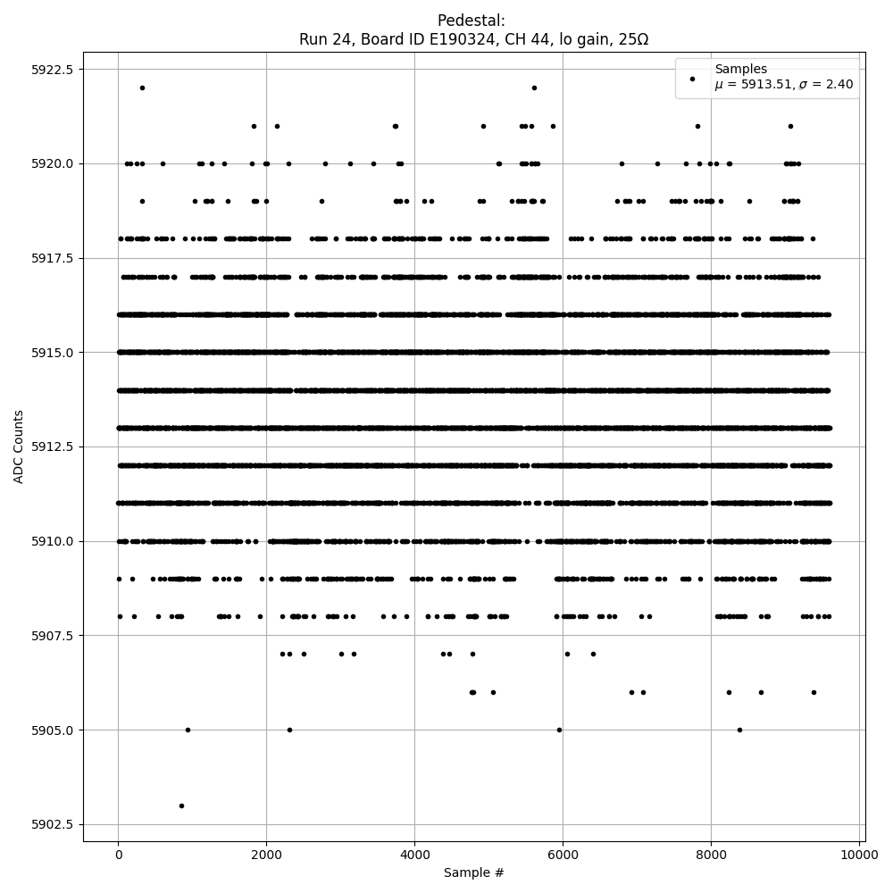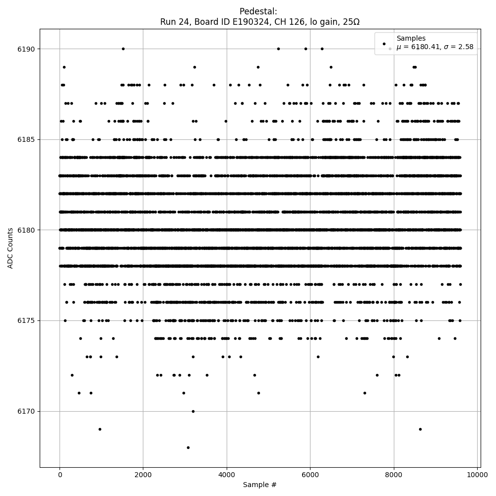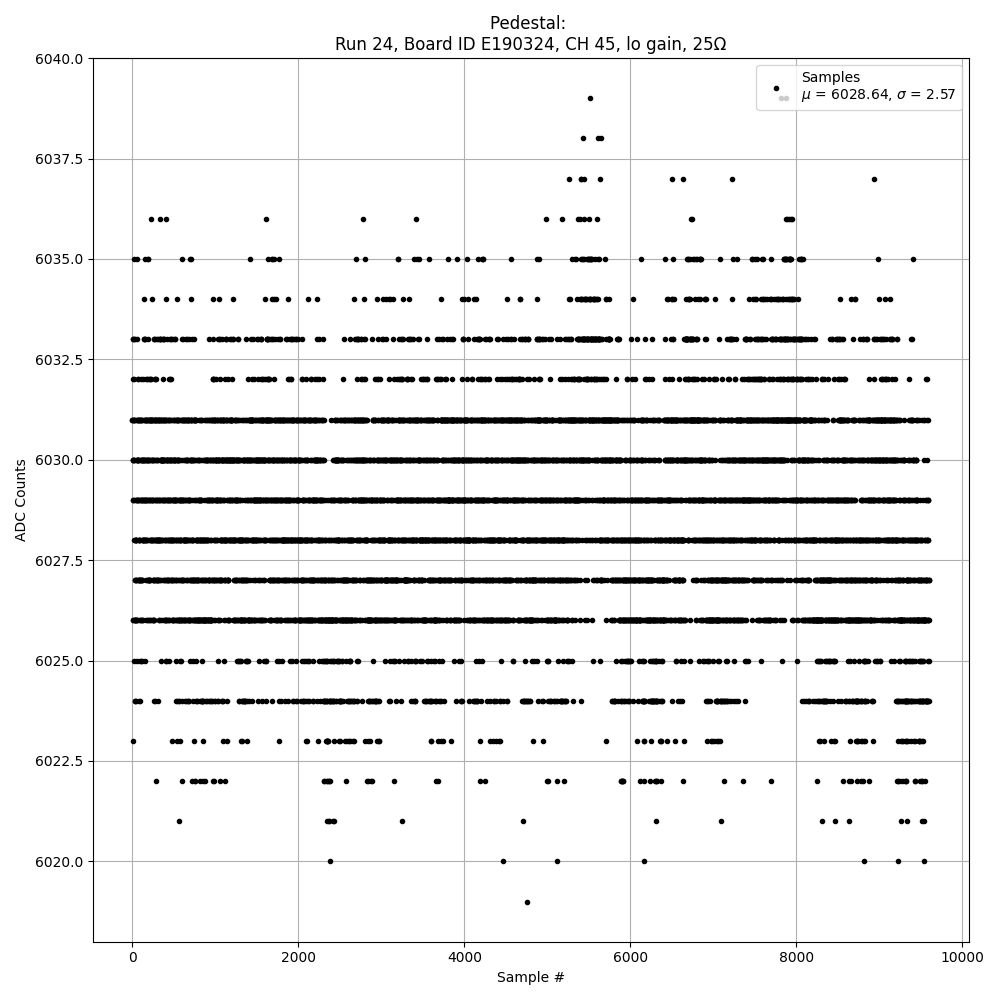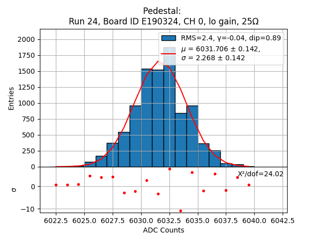 Run24 Board E190324 (LO Gain): Pedestal Per-Channel Plots