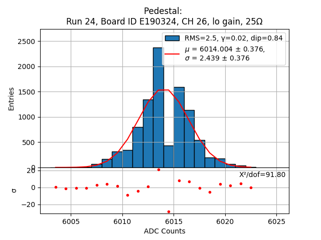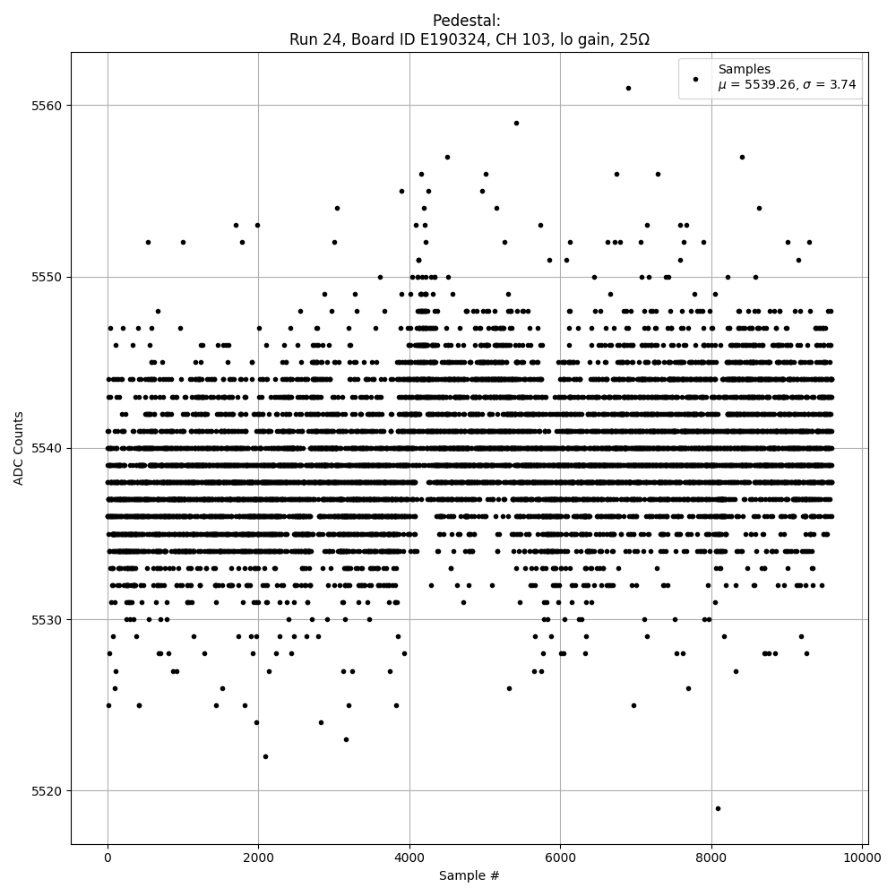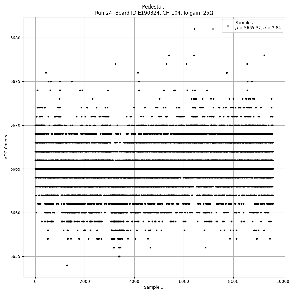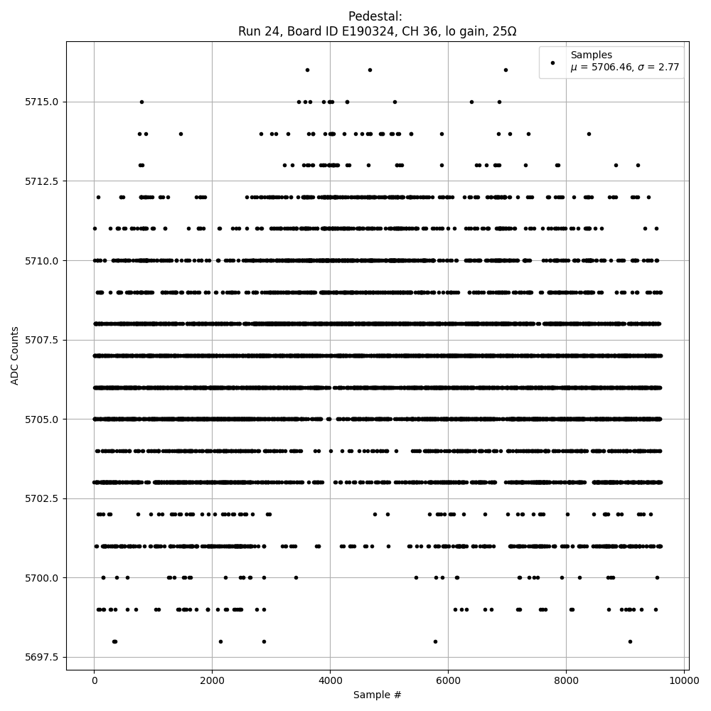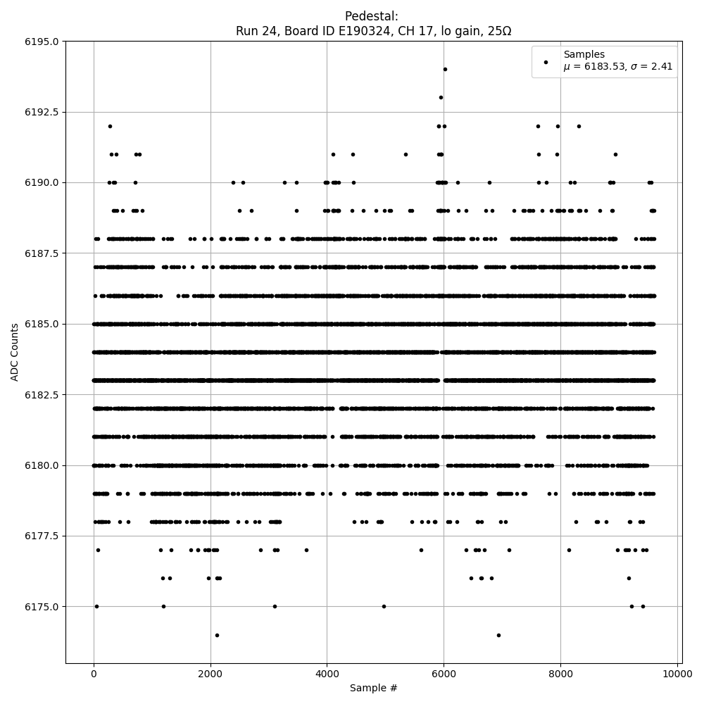Run24 Board E190324 (LO Gain): Pedestal Per-Channel Plots