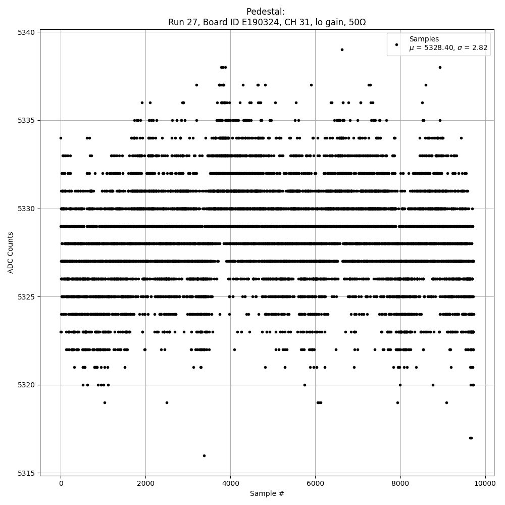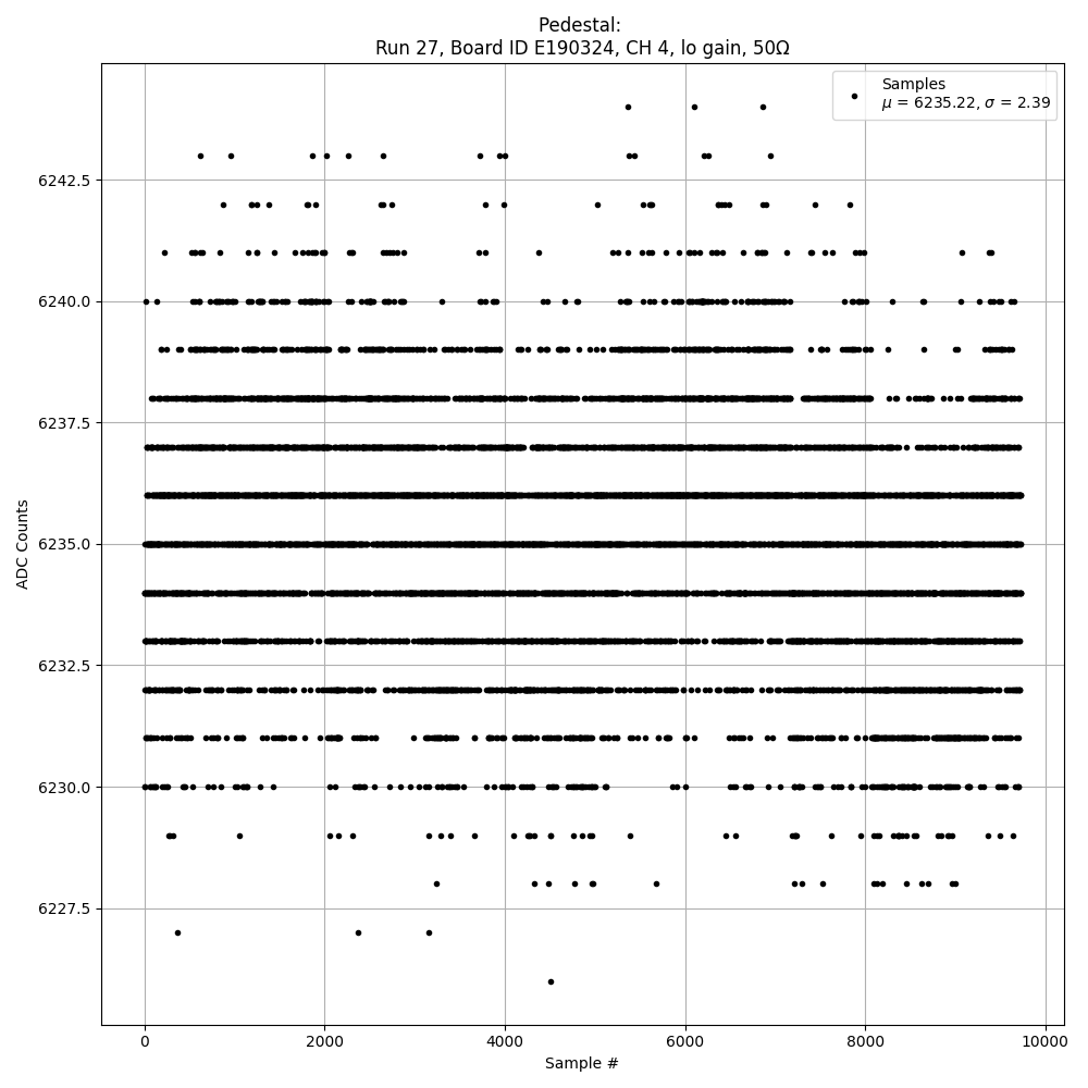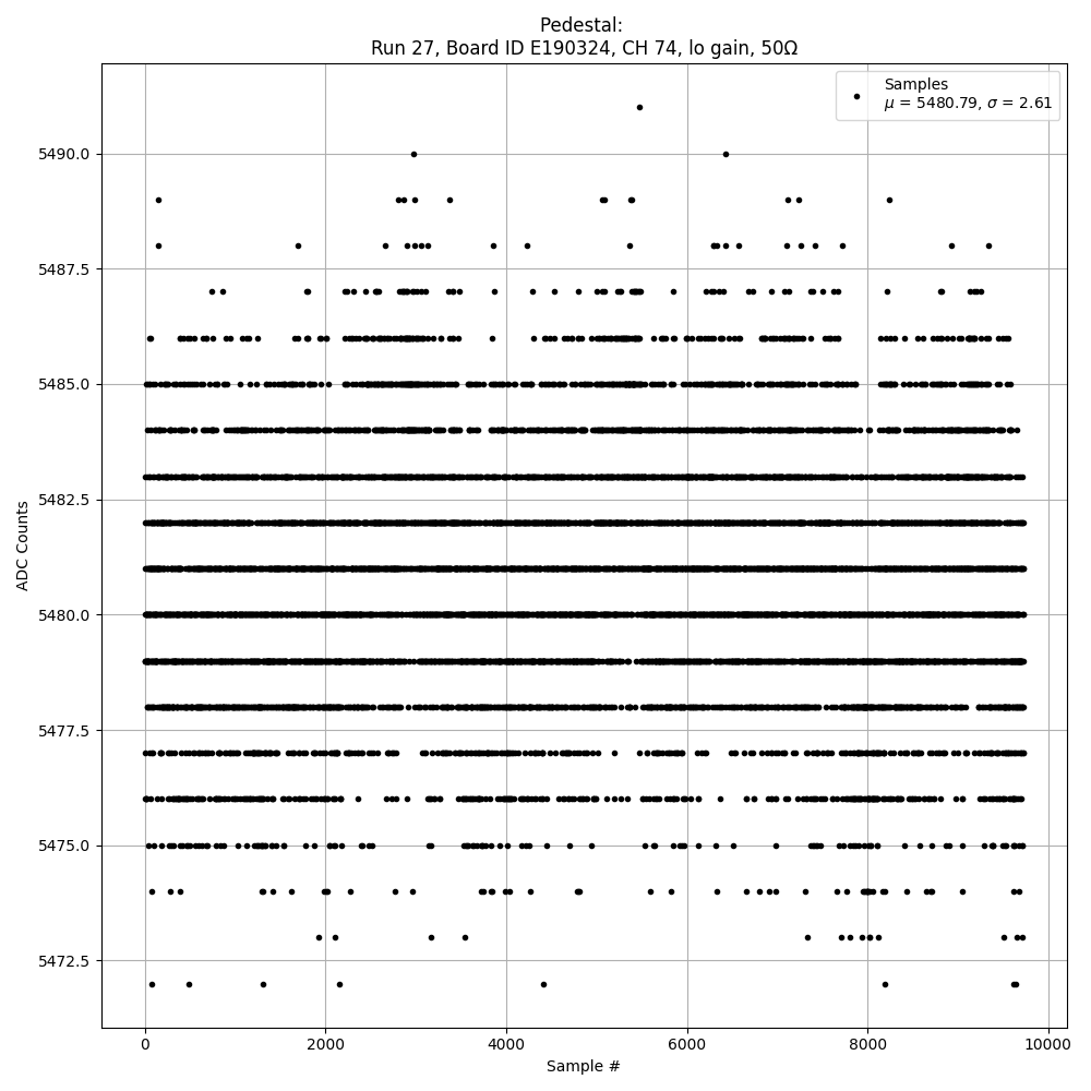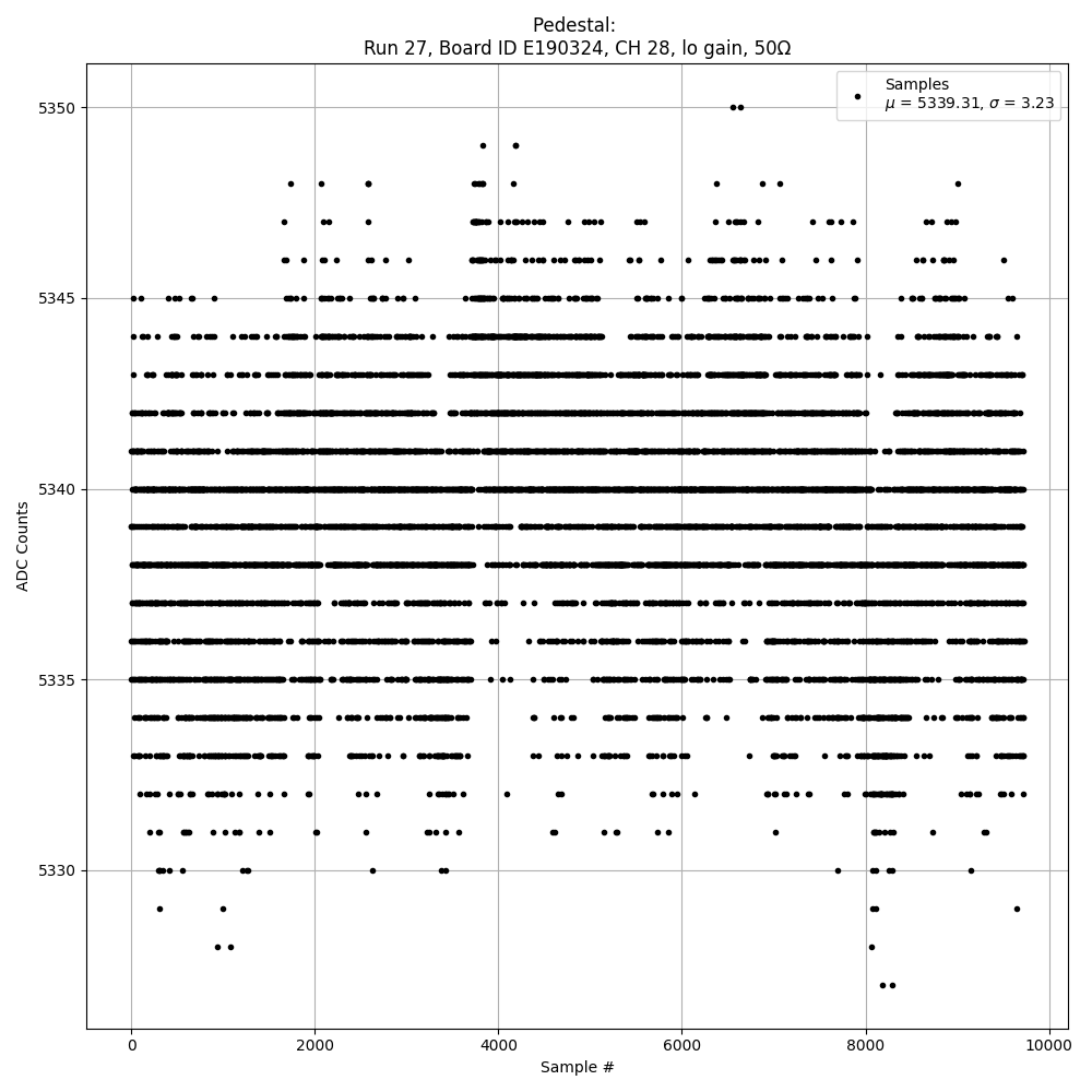 Run27 Board E190324 (LO Gain): Pedestal Per-Channel Plots
