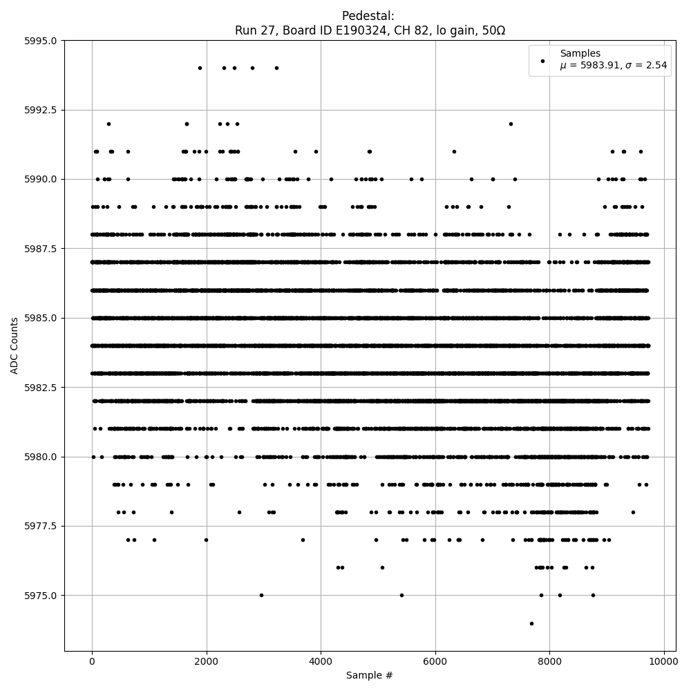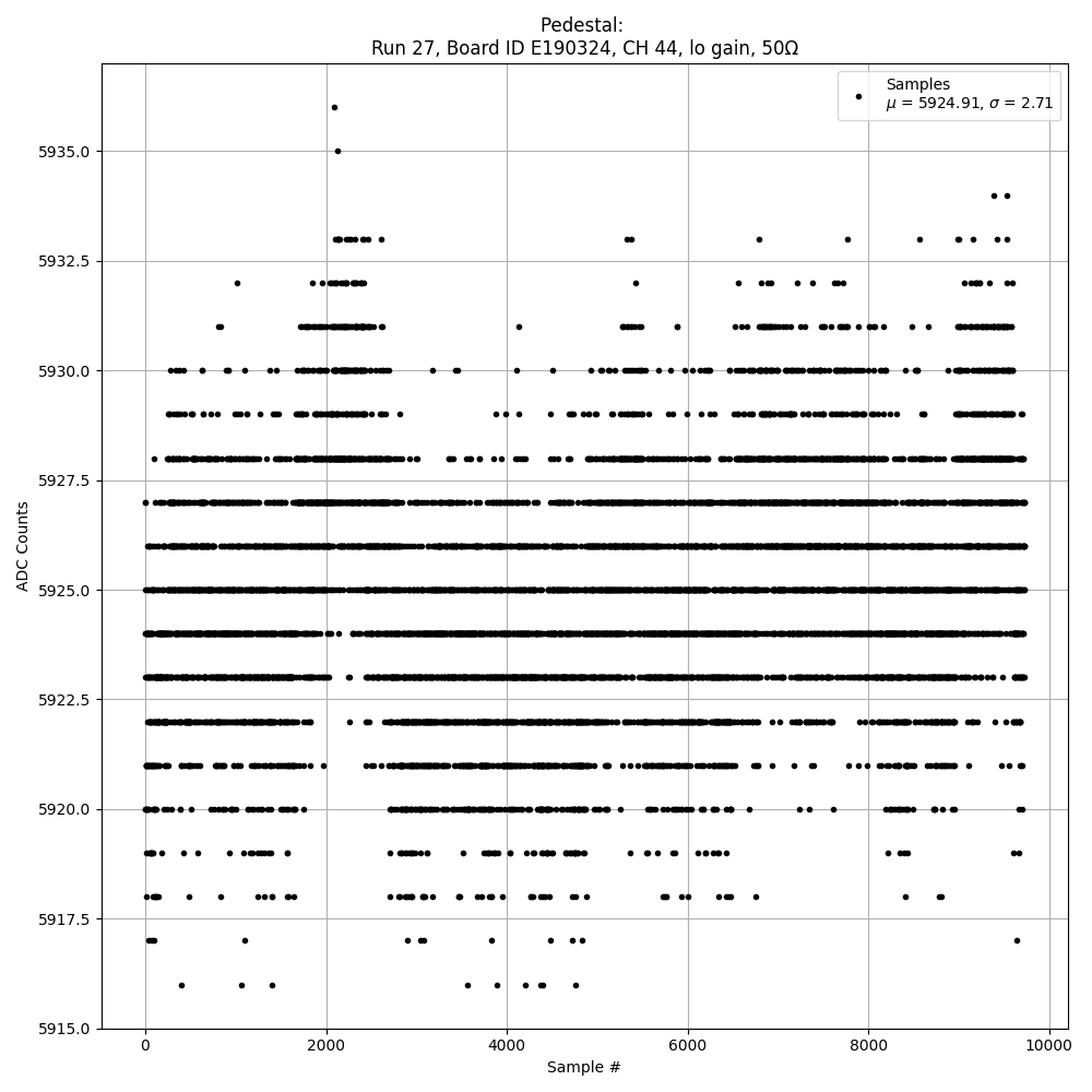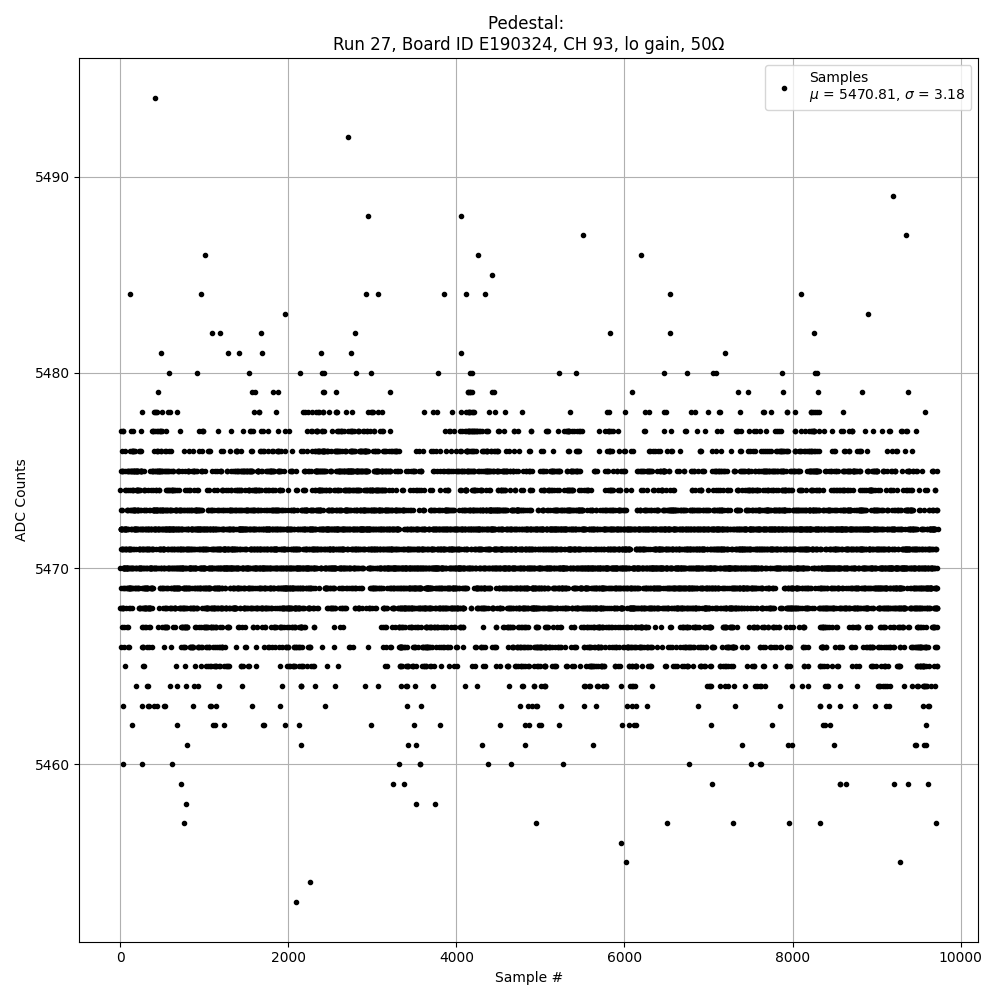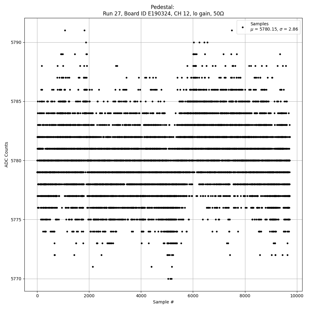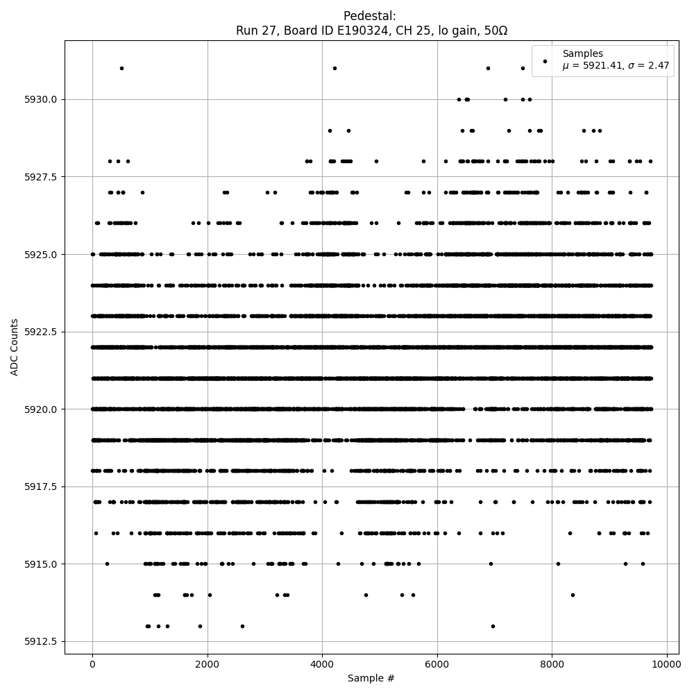 Run27 Board E190324 (LO Gain): Pedestal Per-Channel Plots