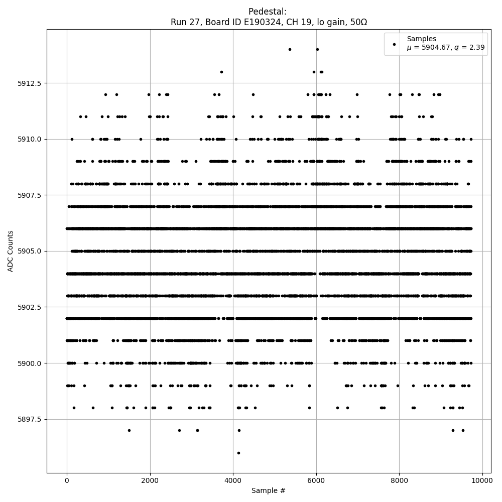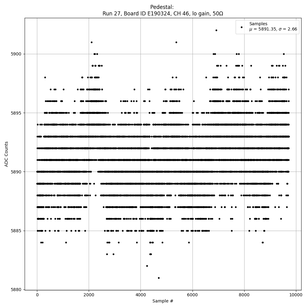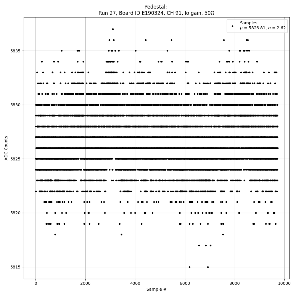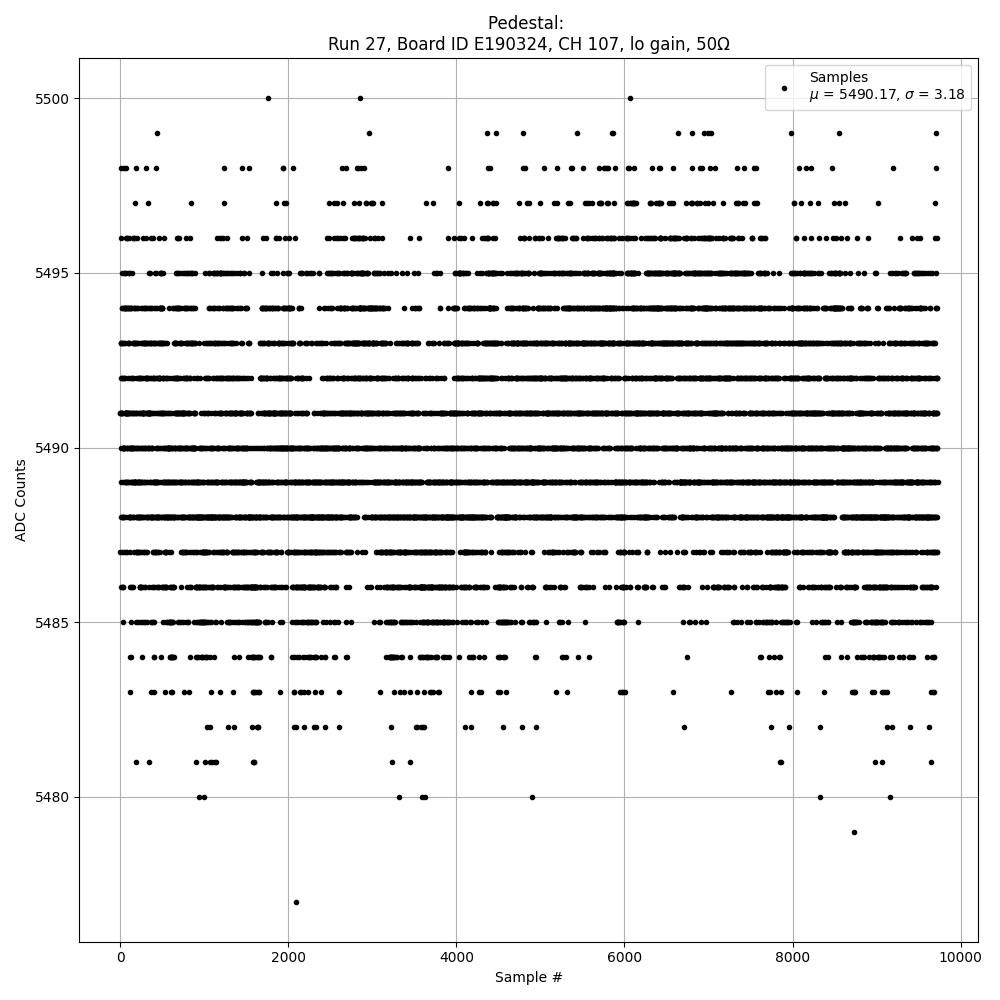Run27 Board E190324 (LO Gain): Pedestal Per-Channel Plots